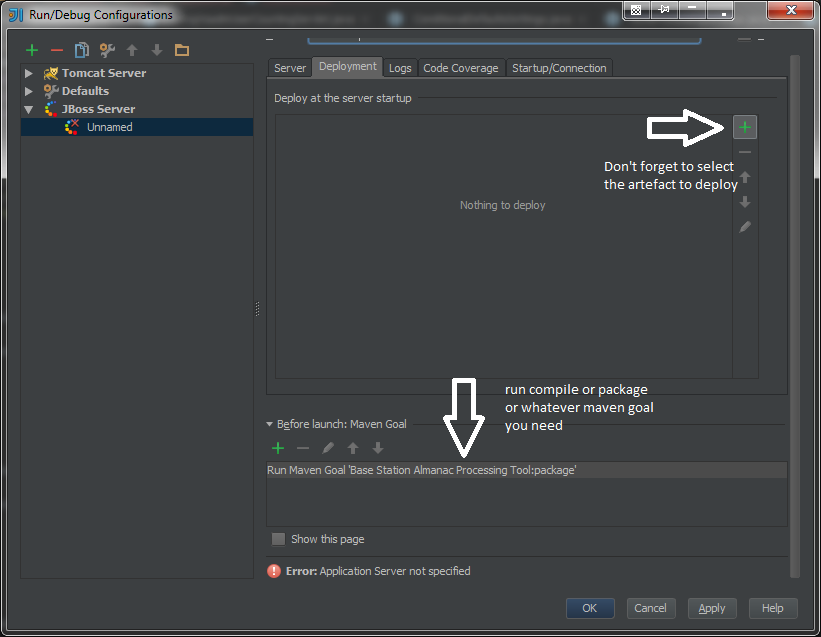编辑:正确运行/调试JBoss配置的屏幕截图