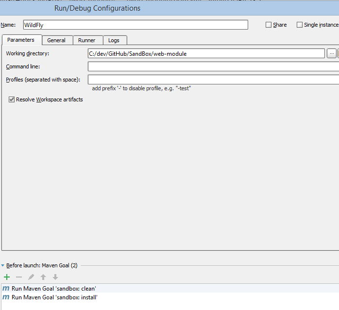 </build>我想在Idea 13.1中运行这个应用程序。我创建了Maven Run/Debug配置: