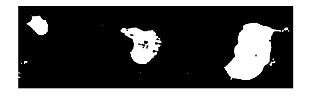 我试图用MATLAB在二值图像中标注白色物体。基本上,我的目标是在航空地图图像中检测水体,然后将图像转换为二进制,然后给身体贴上标签。下面是我在检测身体并转换为二进制后输出的一个图像示例。现在我怎样才能在白色对象周围创建一个创建矩形,并用文本(使用连接的组件)来标记它们?谢谢!