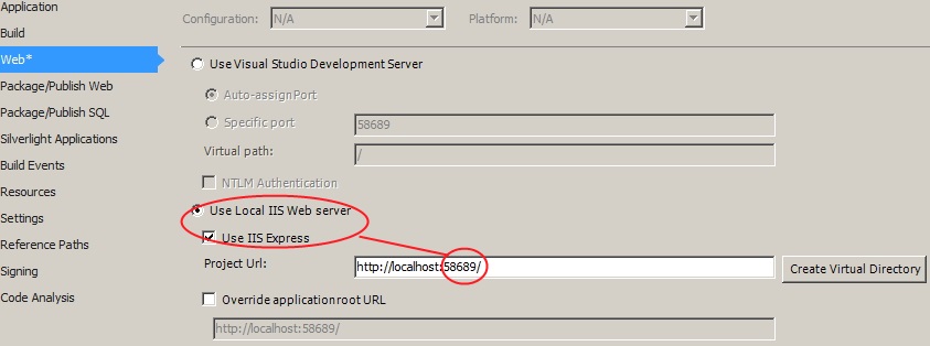 在我看来,选择使用本地IIS服务器更接近于“活动”环境。只需取消“使用IIS Express”设置。