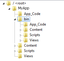 通常,您不需要将任何内容复制到bin文件夹中。在发布时,所有的内容页面(*.aspx、*.html、*.css等)都会通过项目中存在的发布来获取。这是由被设置为Build Action的Content决定的。(注意:可以通过将生成操作设置为None来排除文件)