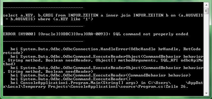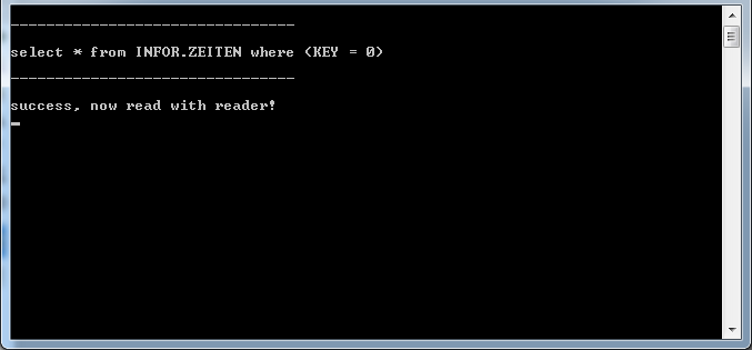 string query = "select * from INFOR.ZEITEN where (KEY = 0)";