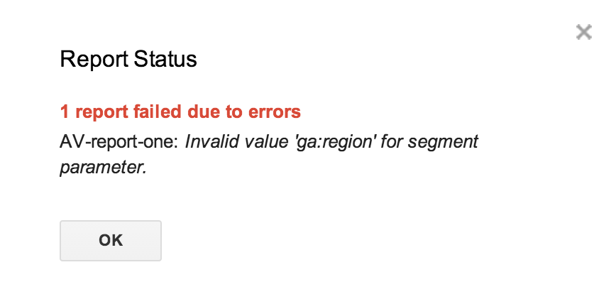 文档中说,在分段这里中允许ga:region,但我得到了以下错误: