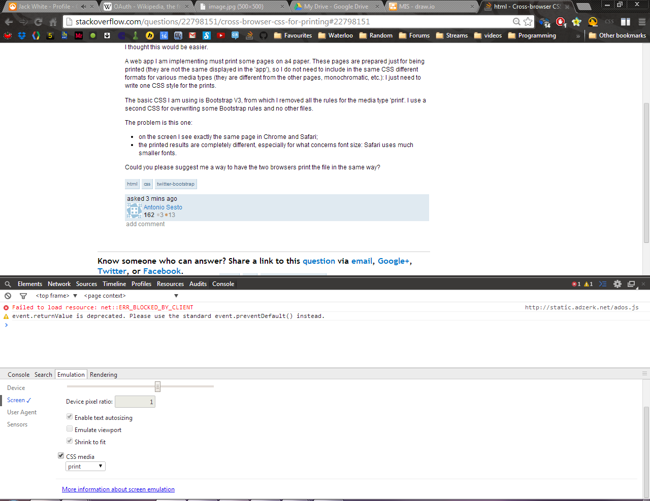 我使用的基本CSS是Bootstrap V3,我从其中删除了媒体类型“print”的所有规则。我使用第二个CSS来覆盖一些引导规则,而不是其他文件。