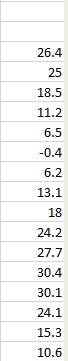 列中包含OleDbDataAdapter对象中的值,如下所示。它几乎没有空域和一堆双值。