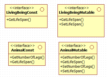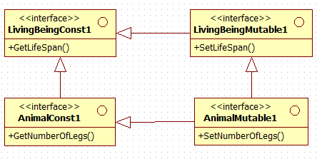 但问题是,AnimalMutable正在获得"GetLifeSpan()“方法的两个实例(一个来自AnimalConst,另一个来自LivingBeingMutable)。有人能告诉我设计它的正确方法是什么吗?