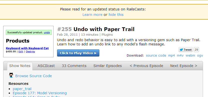 它的工作方式是将您的ruby对象存储在一个名为versions的数据库中。这可以在许多不同的方式中引用,允许您使用不同的数据变体执行所需的任何操作。