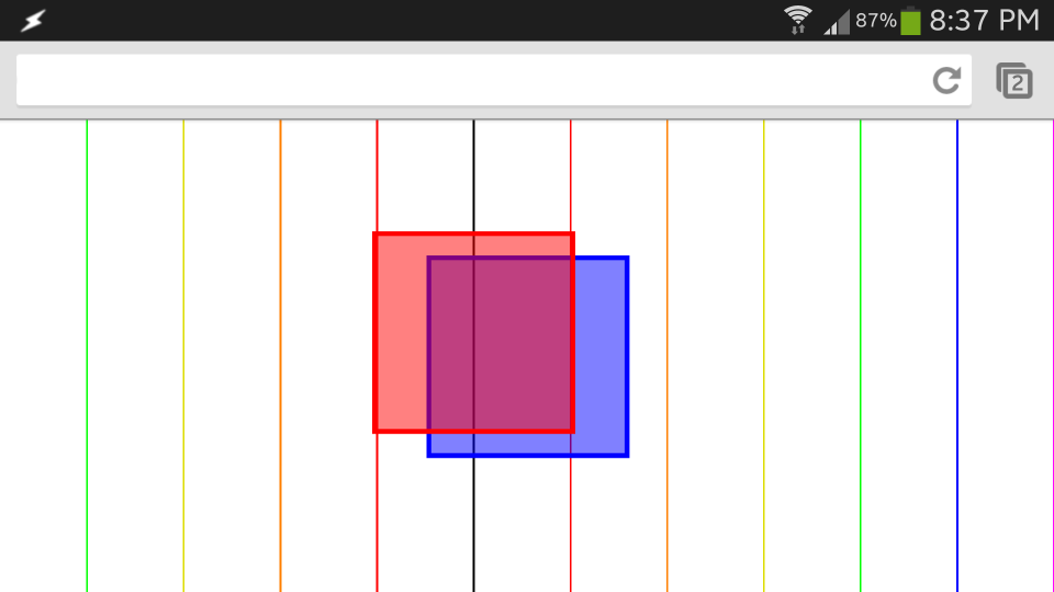 div元素。(我用了1200页)div元素,以left:0; right:0; margin:auto;或left:50%; margin-left:-100px样式为中心。问题是“居中”的div元素实际上不是。它们在左上有一个偏移量(如果垂直对中的话,则是顶部)。在Chrome和Dolphin (WebKit)的安卓设备上都出现了这个问题。它不会出现在台式机上(经过测试的Chrome、FireFox、Safari和IE)。
