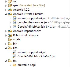 请按照此示例代码链接 of AdMob的docs步骤使用google-pay-services.jar而不是GoogleAdMobAdsSdk.jar。