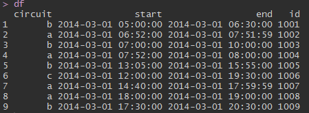 ), class = "factor")), .Names = c("circuit", "start", "end",