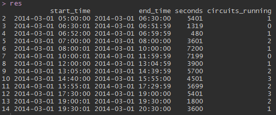 res <- data.frame(start_time,end_time,seconds,circuits_running)[-1,]