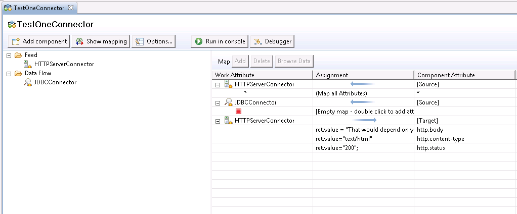 现在,服务器模式下的HTTP连接器稍微复杂一些,因为它需要向HTTP客户端发送一个响应,因此它包含一个输入映射和一个输出映射。所发生的情况是读取请求,执行数据流部分,然后HTTP连接器实例本身向HTTP客户端返回一个答复。这一点在这里有详细的描述,7.1/referenceguide29.htm%23serverconnect2,所以我将不讨论这么多的细节。