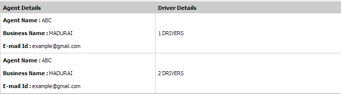 在我的驱动程序db表中,我有agent_id、driver_id、driver_name。我想从基于agent_id的驱动程序表中获取驱动程序的数量。这是一个很好的方法。但是,我的问题是,我有多个while循环,所以它不能正确地获取。看看我附的照片。你可以很容易理解。在“代理详细信息”中,它总是在所有行中获取相同的行。