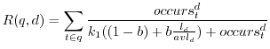 occurs_t^d是t在d中的术语频率,l_d是文档的d长度。avl_d是文档沿集合的平均长度。k_1是一个自由参数,在0,1中通常是2和b。将0分配给b相当于避免了规范化过程,因此文档长度不会影响最终得分。