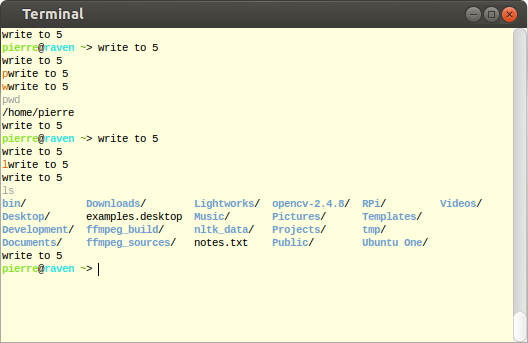 在我的Ubuntu13.10笔记本电脑上,Fish有一个奇怪的问题。我已经用了几个月的鱼与100%的默认设置。昨晚一切似乎都很好,但是今天早上我打开了一个新的航站楼时注意到了一些事情。每次我点击键盘上的一个键,文本write to 5就会被输出到控制台。有关在提示符下输入ls和pwd命令时发生的情况,请参见下面的屏幕截图。