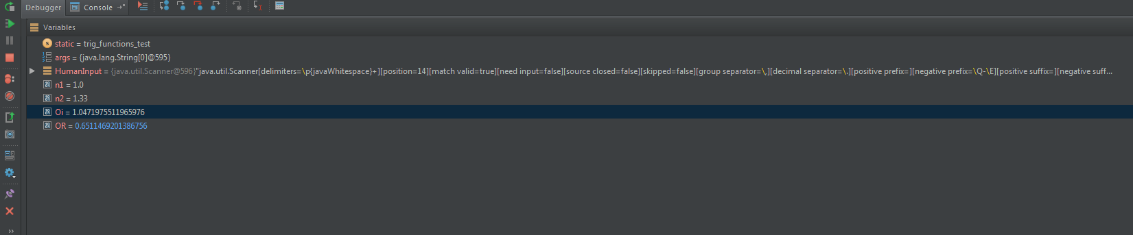 无论如何,我正试图制作一个简单的程序来计算Snell定律的部分内容(我意识到有一些网站可以这样做)。但是弧正弦似乎一点也不影响我的变量值。
