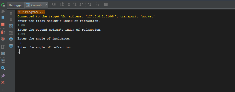 System.out.println("Angle of refraction: "+OR);https://stackoverflow.com/questions/23188628