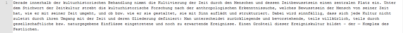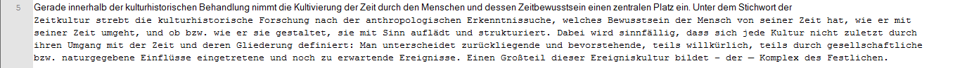 作者声明: Gerade innerhalb der kulturhistorischen Behandlung die Kultivierung der Zeit durch den Menschen und Zeitbewusstsein einen zentralen Platz ein。Unter dem Stichwort der Zeitkultur strebt die kulturhistorische Forschung nach der人类学家Erkenntnissuche,wie Bewusstsein der Mensch von seiner Zeit hat,wie er mit seiner Zeit umgeht,und ob bzw.Wie er sie gestaltet,sie mit Sinn und dt strukturiert。Dabei将有sinnf llig,dass sich jede Kultur nicht zuletzt durch ihren Umgang mit der Zeit und deren Gliederung definiert: Man unterscheidet zurückliegende und bevorstehende,teils zuürlich,teils zuüsich,teils durch gesellschaftliche bzw.。公司名称: Einen Gro teil dieser Festlichen bildet - der - Komplex des Festlichen。