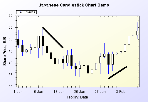 我在佐德图上有一张OHLC股票价格图。我想在这张图上添加多个线段,其中我只知道起始点和终点值-所以基本上,我有一个(开始日期,价格)和一个(结束日期,价格)的两个点的组合,我想画一条线穿过。
