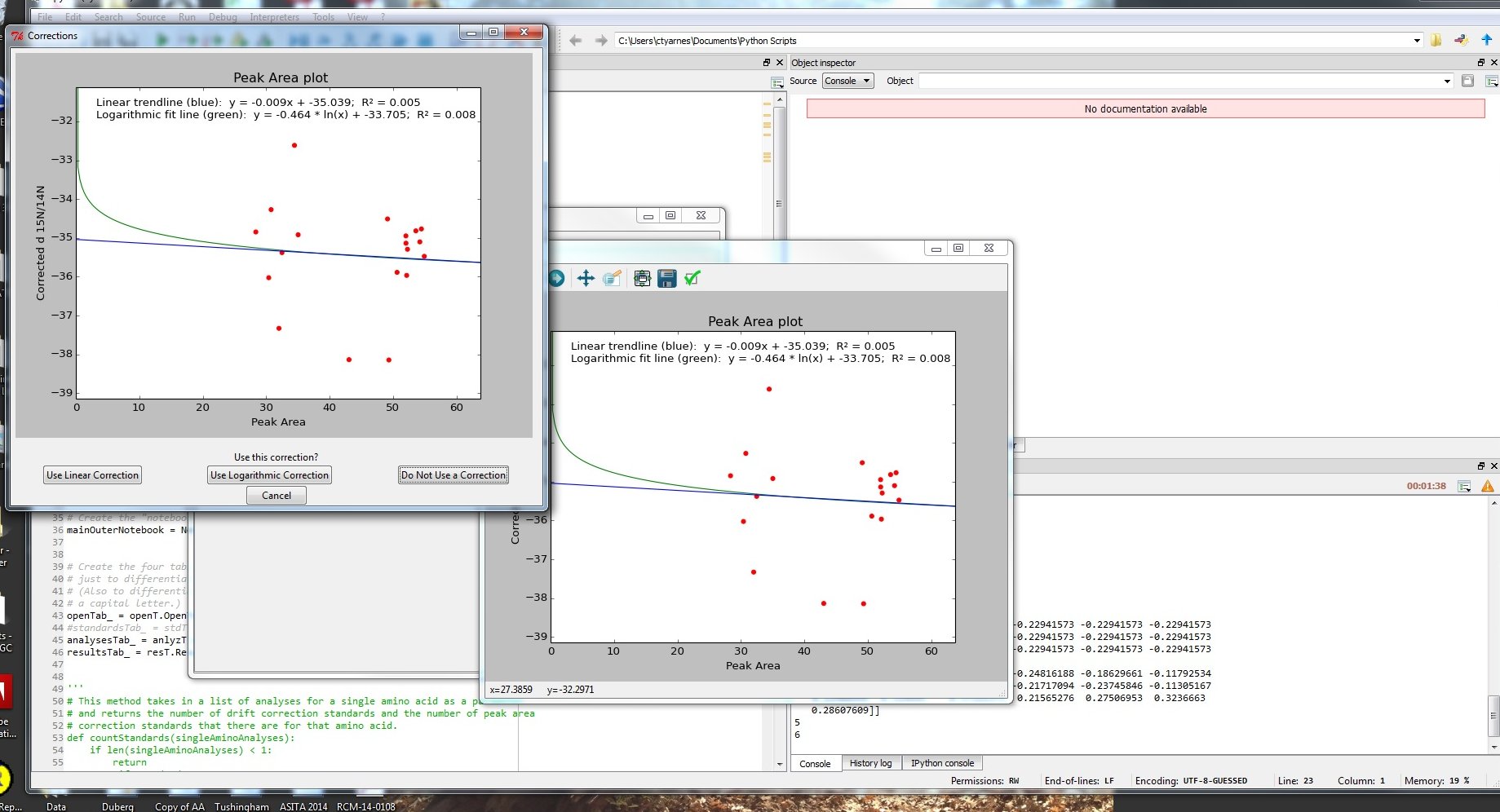 logRSquared = numpy.round(calculateLogRSquared(scatterXs,scatterYs,logA,logB),3)
