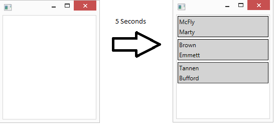string属性的简单User类操作。ItemsControl是如何创建和呈现显示3个数据项所需的批准UI元素的。“每个项目的外观”的实际定义是DataTemplate。Task的内容来利用async / await并使代码更简洁。我在C# 4.0上,所以这个特性对我来说是不可用的。File -> New Project -> WPF Application中,并亲自查看结果。https://stackoverflow.com/questions/23303985