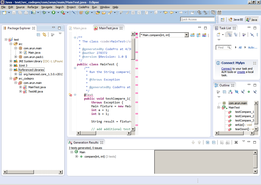 现在,在包含junit-3 jar文件之后,可以用junit-3生成测试用例。