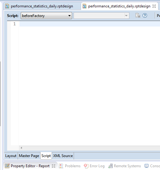 temp;要在整个报表中应用更改,可以在beforeFactory方法中执行脚本,逐步遍历数据元素,更改它们的表达式。最简单的方法是在属性编辑器中将数据元素命名为element1、element2、element2等。然后,您可以在脚本中按名称轻松地访问它们。