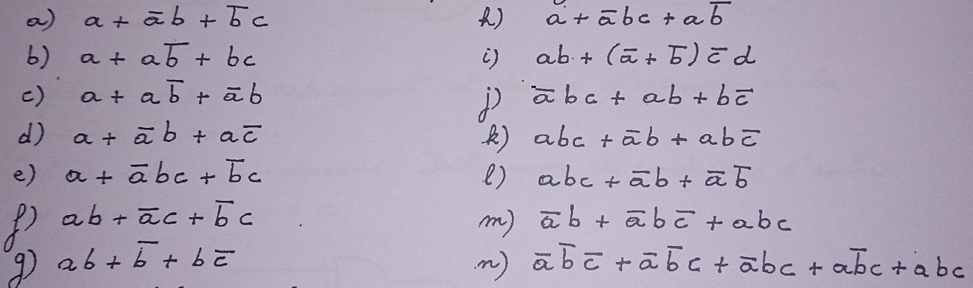 但是对于e)我不能取得更大的进步,因为我不知道在这种情况下如何处理a'bc。有人能帮忙吗?