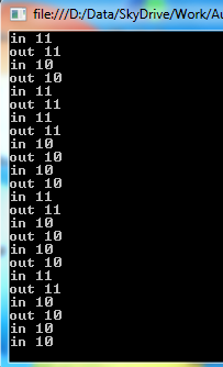Console.WriteLine("out " + Thread.CurrentThread.ManagedThreadId);