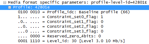 请参阅RFC 6184中的下表:表5. profile_idc和profile-iop的组合表示与一个配置文件支持的完整编码工具集对应的相同的子配置文件。在下面,x可以是0,也可以是1,而配置文件名称如下所示。CB:约束基线剖面,B:基线剖面,M:主剖面,E:扩展剖面,H:高剖面,H10:高10剖面,H42:高4:2:2剖面,H44:高4:4:4预测剖面,H10I:高10内剖面,H42I:高4:2:2内剖面,H44I:高4:4:4内剖面,和C44I: CAVLC 4:4:4 :4。