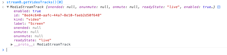 所以它有一个AudioTrack和一个VideoTrack。最初,VideoTrack来自用户照相机(例如label: "FaceTime Camera")。