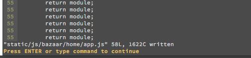 在以vim保存文件后,当前行将很快回显,之后文件名和“书面”消息将被回显。这是正常的,我认为这是一种正常的vim行为,但是在处理更多的文件之后,一些文件多次回显当前行(在某些情况下最多6次,如屏幕截图所示)。当这个输出大于命令行高度时,它会触发一个提示符“按回车或命令继续”。