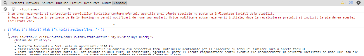 console.log($('#tab-3').html().replace(/â/g, '•'));