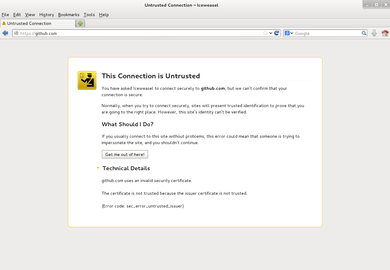 好吧,这很奇怪,我用WebScarab来分析HTTPS的流量。每次我尝试访问HTTPS网站时,我都会被要求添加一个安全异常(这是正常的,也是有效的)。问题是,当我尝试访问https://github.com时,没有办法为它添加异常。所以我不能使用github.com作为代理浏览WebScarab。