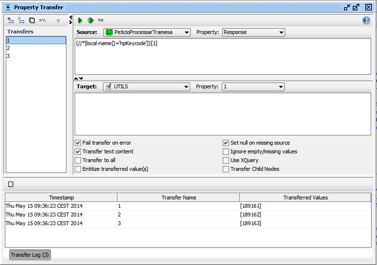 如果您想避免使用XQuery,可以在您的财产转移上添加三次传输,每一次使用: