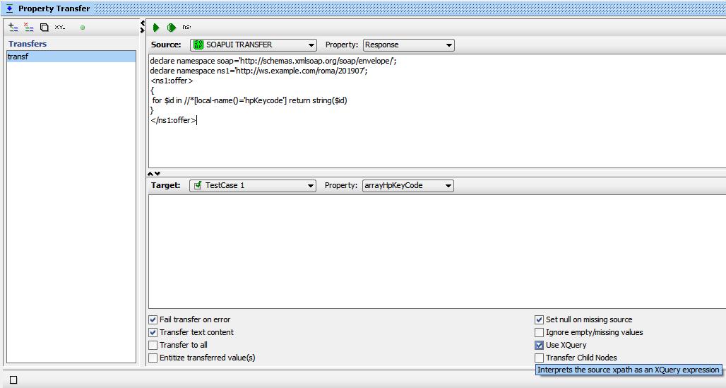 你可以试试XQuery。在属性转移步骤中,选择使用XQuery复选框,如您在下面的图像中所看到的那样。并使用以下代码: