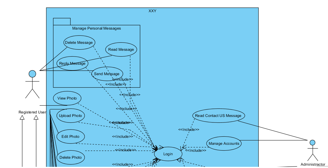 在图表中显示的详细信息级别上,登录不是一个UseCase。只要删除登录Usecase,您的图表将是正确的。通过UML中的酶定义。UseCase代表了系统的有用功能。从这个角度来看,登录不是一种功能,但它是执行您定义的使用程序的先决条件。这意味着,必须登录用户才能与UseCase环境中的系统进行交互。