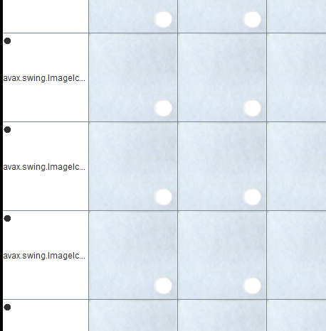 满是鳗鱼的气垫船已经帮了我的忙,给了我一个TableCellRenderer,但现在:我可以画一个没有问题的圆圈。我只是搞不懂最初的ImageIcons(在所有的单元格中)是如何被空的单元格和一个黑色的圆圈所覆盖的。