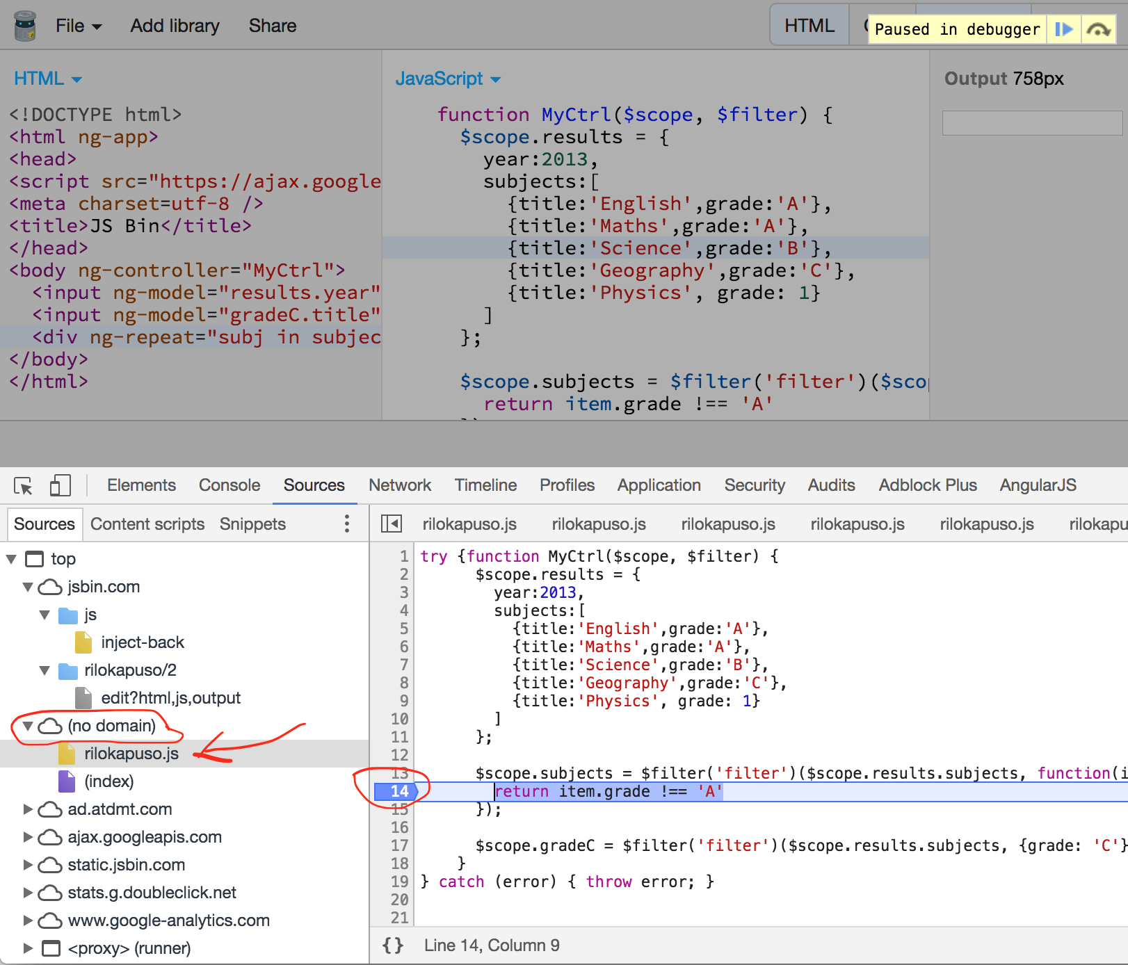 我在调试用js bin编写的js代码时遇到了问题。