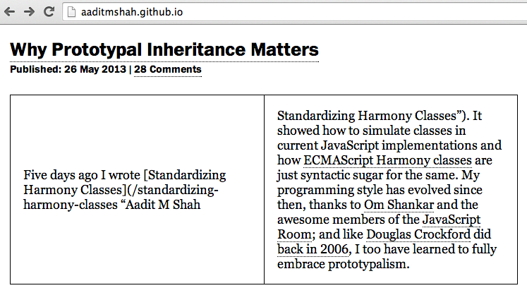 (/standardizing-harmony-classes "Aadit M Shah | Standardizing Harmony Classes").你看到"Aadit M Shah | Standardizing Harmony Classes"里的烟斗了吗?Kramdown错误地将其视为一个表单元分隔符,从而导致上面可怕的表,这实际上应该是一个段落。