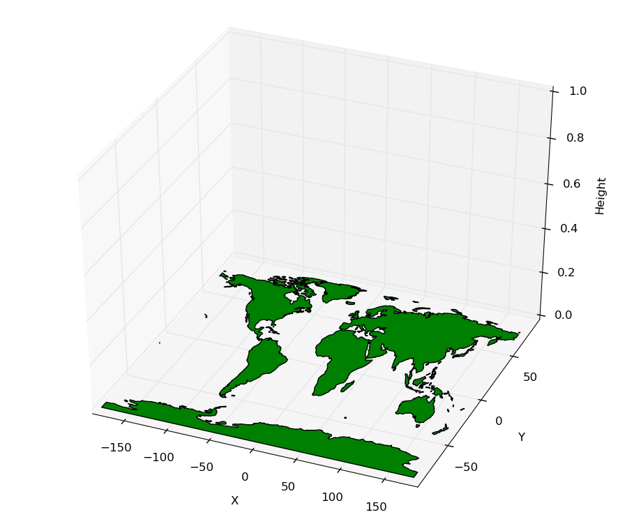 最重要的是,mpl3d似乎很好地处理了PolyCollection,这将是我要研究的填充几何学的路线,比如陆地轮廓(而不是严格意义上的海岸线)。