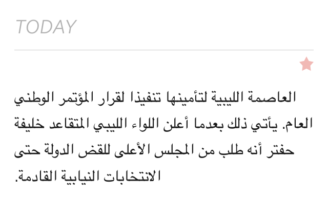 NSString *arabic = @"العاصمة الليبية لتأمينها تنفيذا لقرار المؤتمر الوطني العام. يأتي ذلك بعدما أعلن اللواء الليبي المتقاعد خليفة حفتر أنه طلب من المجلس الأعلى للقض الدولة حتى الانتخابات النيابية القادمة";