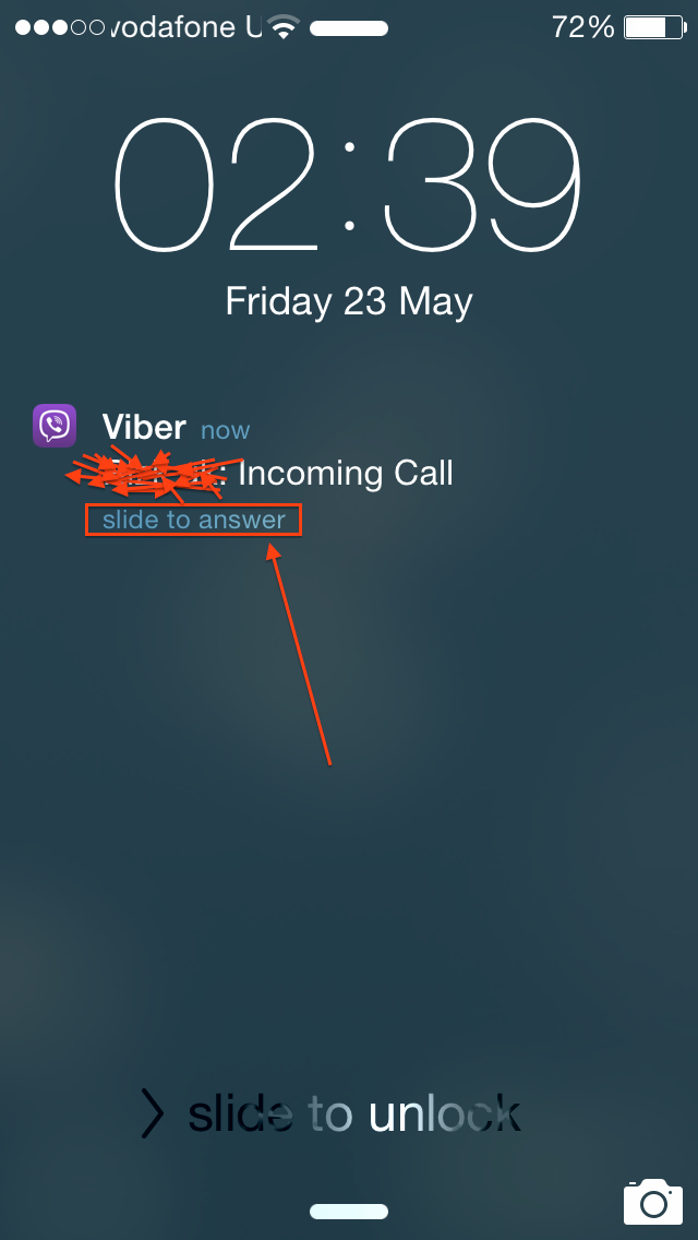 在图中,您可以看到在push通知警告下面写的文本是幻灯片来回答。当我向另一个人发送推送通知时,他们会让幻灯片查看