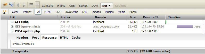 2 vars a和b包含一些东西。我想将这些数据发送到一个名为update.php的文件中,其中包含: