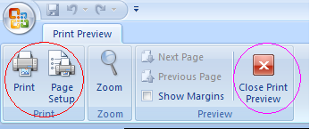 用户只需单击“关闭打印预览”,也可以简单地关闭打印属性页(请参见下图)并返回到可能危及文档的数据的文档。