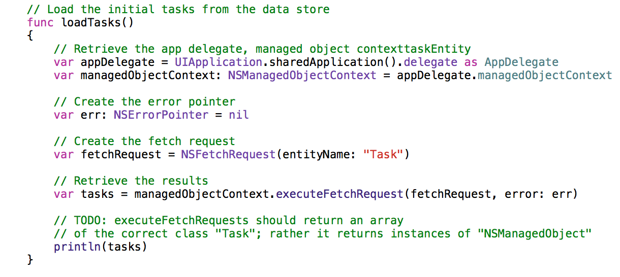 使用@objc(Task)似乎很有效,但您也可以将数据模型数据建模器配置编辑为ToDoList.Task,而不是只编辑Task。如果在Objective代码中的任何地方使用Task,也可以避免类冲突。