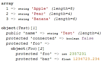 如果这是用于调试的话。安装X调试,并使用var_dump()。你得到了一个可爱的,漂亮的输出。