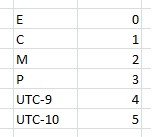 现在我要做的是,如果单元B等于值(即E、C、M或P),单元C将显示该时区中的当前时间。