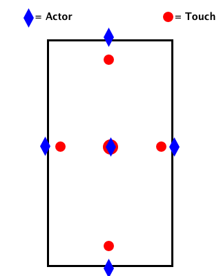 当触摸在场景中间表演时,演员就完美地移动到触觉上。总之,触觉离中间越远,演员和触觉之间的距离就越明显。换句话说,接触越接近中间,演员就越接近触觉。