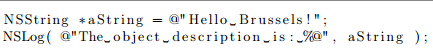object对象,打印为descriptionWithLocale返回的字符串:如果可用,则以其他方式描述。还可以使用CFTypeRef对象,返回CFCopyDescription函数的结果。